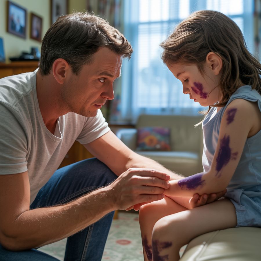 “Michael se enoja”, dijo. “Cuando derramo cosas… o cuando lloro. Me aprieta el brazo. Fuerte. Y dice que no se lo diga a papá porque también se enojará. Pero… papá no está enojado conmigo”.