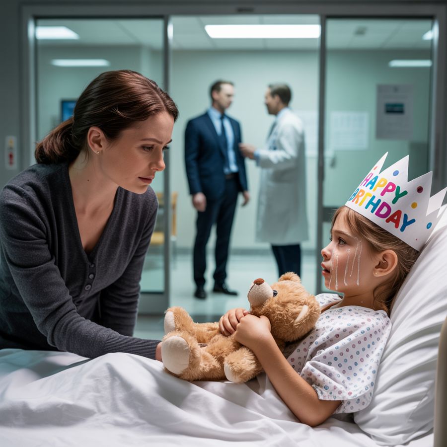 Mi hija de siete años, Emily , yacía recostada sobre almohadas blancas de hospital, dibujando círculos sobre la manta con sus finos dedos. Las serpentinas de una decoración de cumpleaños improvisada colgaban contra la pared. Una corona de papel le caía torcida sobre la cabeza. Me sonrió, pero era el tipo de sonrisa que le costaba esfuerzo.