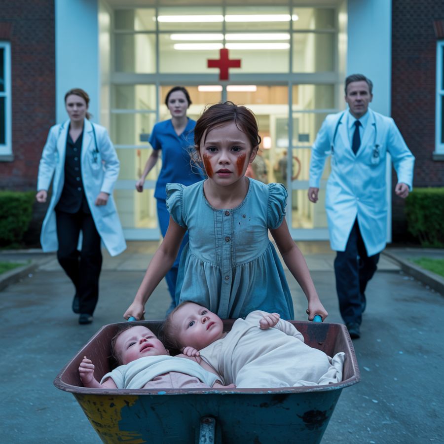 La enfermera se quedó paralizada a medio paso cuando la vocecita resonó por la sala de urgencias. Una niña de siete años estaba de pie justo al otro lado de las puertas corredizas, con las manos apretadas alrededor de los mangos de una carretilla oxidada. Tenía el pelo enredado y las zapatillas desgastadas. Dentro de la carretilla yacía una mujer, pálida e inmóvil, envuelta en una manta. A su lado había dos pequeños bultos: gemelos recién nacidos, apenas más grandes que barras de pan.