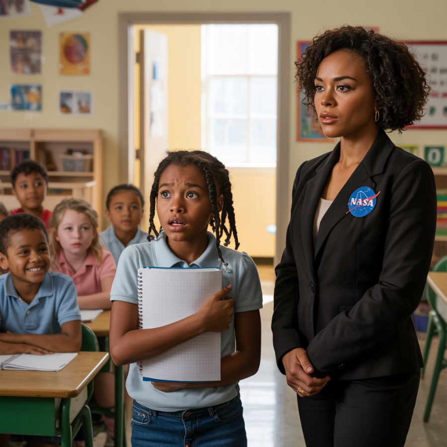 No era sólo el trabajo lo que parecía imposible. Era quién lo decía: una niña de piel morena, con trenzas bien apretadas y una liga rosa. Mochila heredada, cierre roto, zapatos gastados. Para ellos, decir “NASA” era como decir “cuento de hadas”.