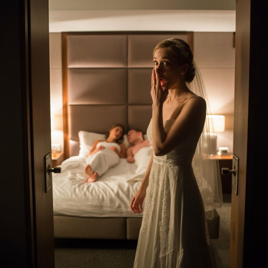 Las cortinas estaban corridas, pero la tenue luz reveló la verdad al instante: ropa esparcida por el suelo: el traje de Maverick y el vestido morado de dama de honor de Penelope. Una botella de champán vacía sobre la mesita de noche. Sábanas revueltas. Cuerpos enredados.