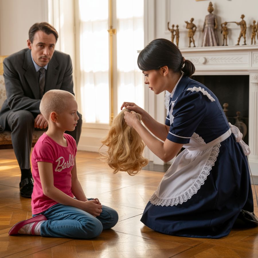 Javier Montenegro ya había despedido a más de cinco empleadas de limpieza en dos meses. Este millonario cruel torturaba a sus empleadas hasta que no aguantaban más. Pero cuando Elena Sánchez vio a Valentina, la hija de 6 años de él, calva por el cáncer, hizo lo impensable. Tomó sus propios ahorros, compró una peluca rubia y se la puso a la niña. Cuando Javier vio a su hija sonriendo por primera vez en meses, entró en shock total. Lo que sucedió después, nadie lo esperaba.