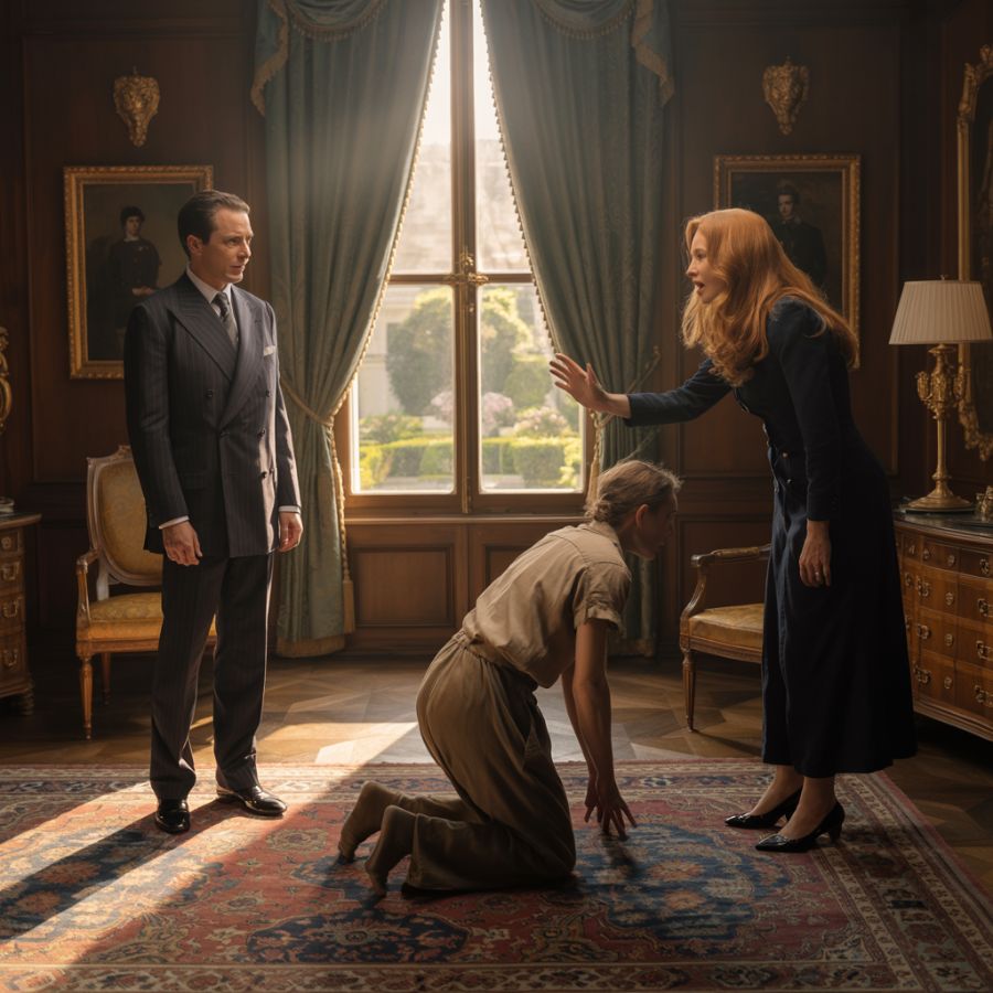 Su silencio era más aterrador que cualquier grito, y su mandíbula apretada mostraba un enojo que estaba a punto de estallar. Rosa, entretanto, recogía de nuevo la bolsa con manos temblorosas, intentando escapar de la humillación. Y fue en ese instante, con todos expectantes y un silencio que quemaba la piel, cuando Andrés finalmente abrió la boca.