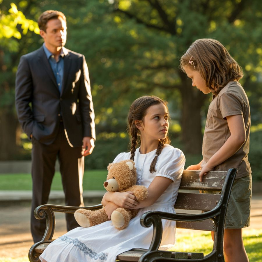Apretó más fuerte su peluche y bajó la mirada. La niña no se fue. En lugar de eso, se sentó junto a ella en la banca como si fueran amigas de toda la vida. Víctor pensó en intervenir, decirle algo, explicarle que su hija no hablaba, pero algo lo detuvo. Había algo en la forma en que esa niña se comportaba que era diferente.