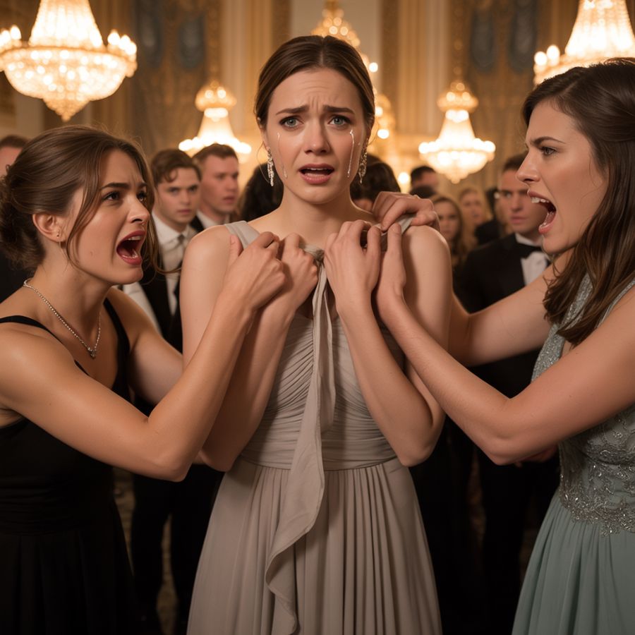 “¡Tu vestido parece sacado de un estante de rebajas, querida!” — Se burlaron de mi ropa barata en la gala de Navidad, sin saber que mi padre secreto acababa de comprar el hotel y todas sus deudas.