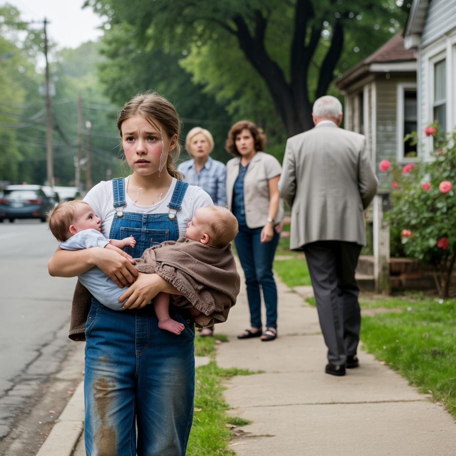 Se apoyó en un poste de luz, dejó la bolsa de pañales en el suelo y volvió a tomar a sus dos hermanos en brazos. No se atrevía a ponerlos en el suelo. “Esperaremos a que el sol baje un poco y luego nos iremos, lo prometo.” El tiempo se arrastraba. El zumbido de una cortadora de césped sonaba desde un patio cercano. Un perro ladraba desde el porche de un vecino. Las respiraciones débiles y los llantos intermitentes de los dos niños pesaban en los brazos de Sofía como piedras.