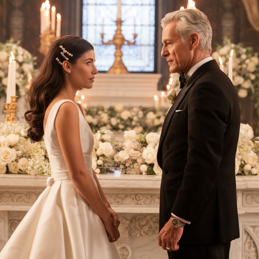 La ceremonia tuvo lugar en una pintoresca iglesia de pueblo. La luz de las velas iluminaba los rostros de los invitados mientras el órgano interpretaba una suave melodía. Michael estaba de pie en el altar, vestido con un elegante traje gris, con su cabello plateado brillando cálidamente. Sonrió dulcemente al verla caminar hacia el altar, pero a Sophia se le revolvió el estómago. Su amabilidad hizo que su culpa se volviera más pesada.