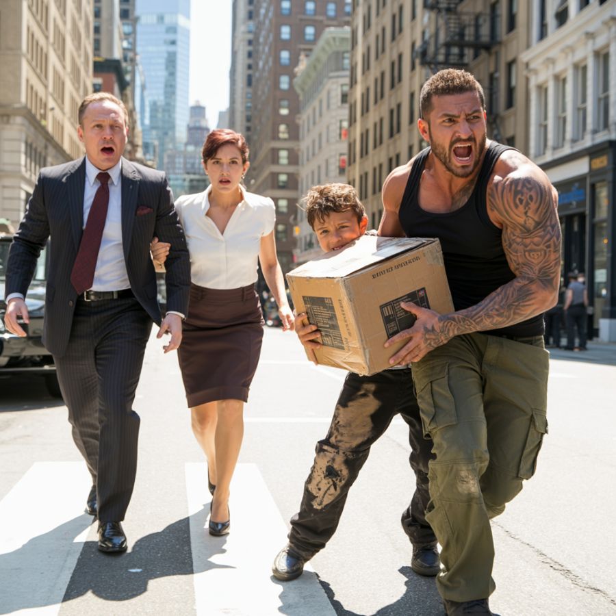Victoria se detuvo a medio paso, agarrando con fuerza el brazo de Marcus. «Marcus… mira», susurró, señalando con la cabeza a un chico delgado y descalzo sentado junto a un edificio de ladrillo rojo al otro lado de la pasarela. Tenía las rodillas pegadas al pecho, la ropa gastada y polvorienta. Pero fue su rostro lo que le aceleró el pulso a Marcus: cabello rubio, mandíbula afilada y un hoyuelo familiar que se acentuaba en la mejilla izquierda al levantar ligeramente la barbilla.