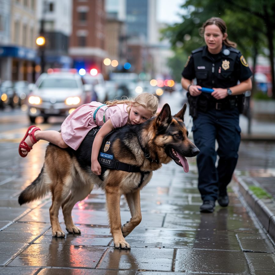 Un pastor alemán , cubierto de tierra y temblando de cansancio, llevaba a una niña, inerte, sobre su lomo. Sus brazos colgaban sin vida, su rostro pálido como el papel. Por un instante, el tiempo pareció congelarse. Las enfermeras se detuvieron a mitad de carrera, un médico dejó caer su portapapeles y una madre en la sala de espera jadeó, llevándose la mano a la boca.