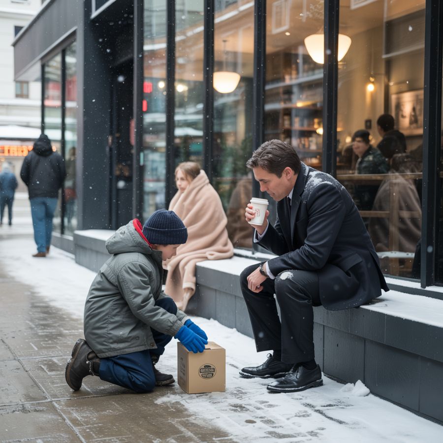 Al principio, pensó que era solo otro mendigo. Pero entonces vio al niño: no mayor de nueve años, con la cara roja de frío, guantes desparejados y ojos demasiado viejos para su pequeño cuerpo.