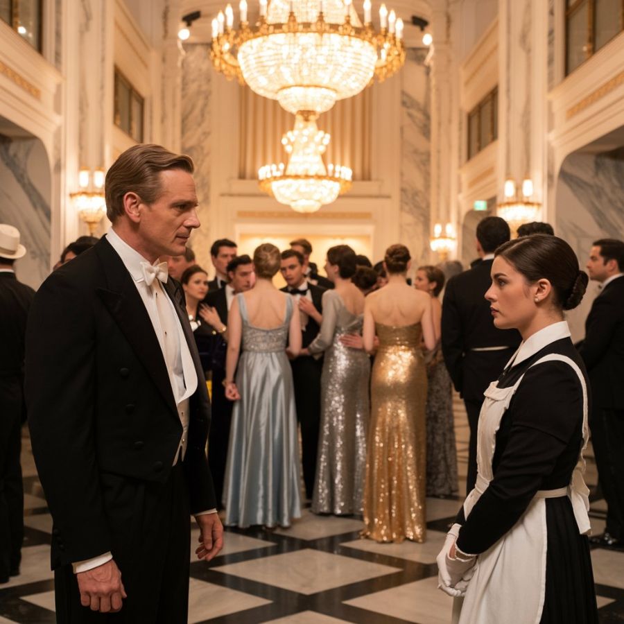 Todo el lujo de aquel palacio quedaba reducido a una única escena, la de una empleada anónima desafiando al millonario frente a todos con la pureza de su baile. Y lo que hasta hacía unos minutos era motivo de risa, comenzaba a transformarse en un secreto temblor de respeto. El tango avanzaba como una corriente eléctrica que se apoderaba de todos los presentes.