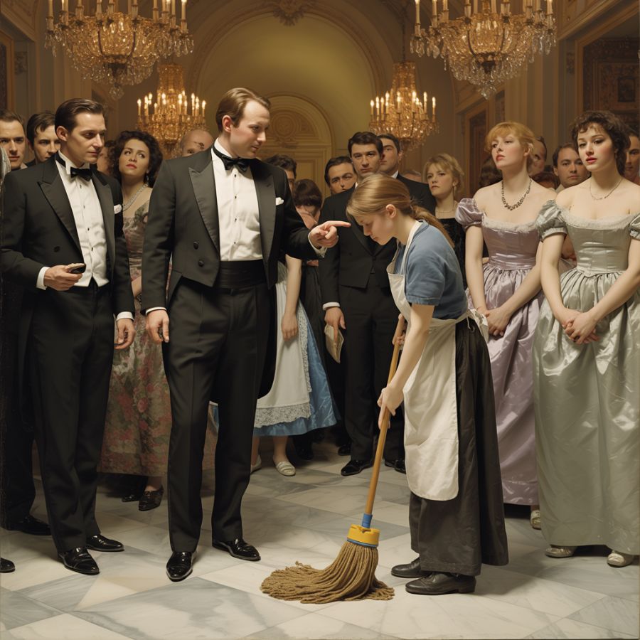 Todo el lujo de aquel palacio quedaba reducido a una única escena, la de una empleada anónima desafiando al millonario frente a todos con la pureza de su baile. Y lo que hasta hacía unos minutos era motivo de risa, comenzaba a transformarse en un secreto temblor de respeto. El tango avanzaba como una corriente eléctrica que se apoderaba de todos los presentes.