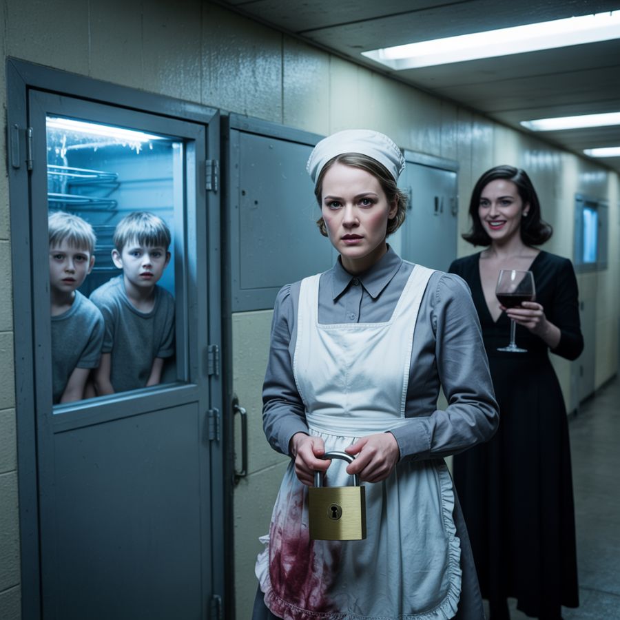 Tus hijos están encerrados en el congelador del sótano. Ella lo sabe.