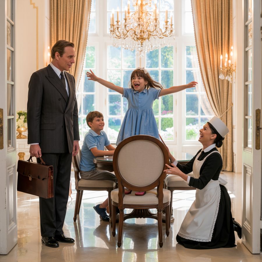 En el momento en que Adrian estacionó su coche frente al reluciente pórtico de mármol, esperaba encontrar la casa en completo silencio. Sin embargo, al cruzar la puerta, quedó detenido por un sonido inesperado. Un estallido de risas genuinas provenía del comedor, un sonido que hacía años no escuchaba en ese lugar.