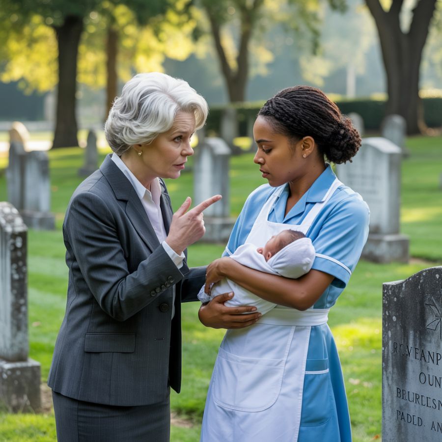 Un multimillonario visita la tumba de su hijo y encuentra a una camarera negra llorando con un niño. ¡Quedó en shock!