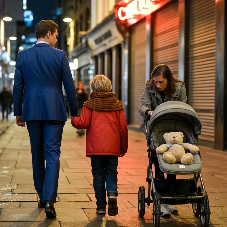 Ran notó que Leo había frenado y giró apenas la cabeza. Miró de reojo y, en una fracción de segundo, clasificó la escena con la rapidez cruel de quien está acostumbrado a resolver problemas sin sentirlos: una vagabunda, una mujer inestable, una más en las esquinas frías de la ciudad. Algo que no era su responsabilidad.