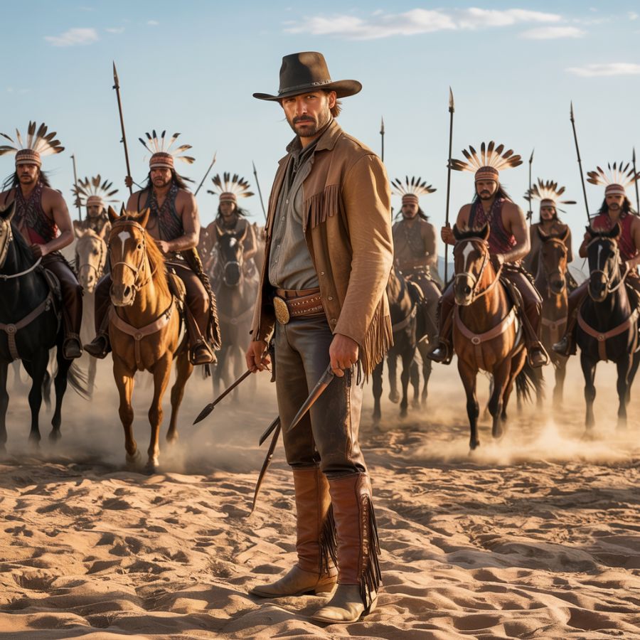 El silencio se quebró con el sonido de un solo caballo avanzando. Era el jefe, un hombre alto de rostro endurecido por los años, con cicatrices que hablaban de batallas pasadas. Tenía en su mano también una pluma blanca, pero la sujetaba de manera distinta: apuntando hacia arriba, como un estandarte.