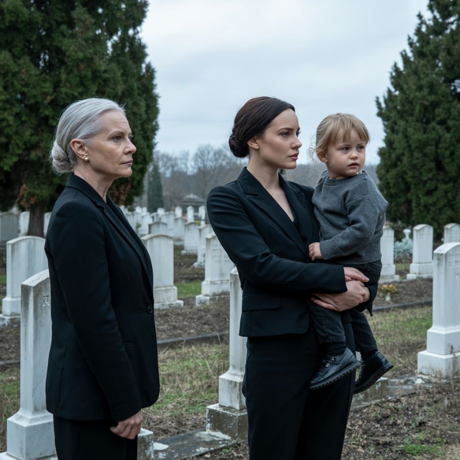 El viento se volvió más frío, pasando entre las lápidas como un susurro de misterio. El niño miró a Elenor y con una inocencia desconcertante le extendió la manita. En aquel instante, algo profundo e inesperado se instaló. Elenor sintió como si el mundo entero se hubiera detenido y el dolor de su pérdida, mezclado con el enigma de aquella mujer y de aquel niño, abriera una puerta a algo que cambiaría completamente el rumbo de su vida.