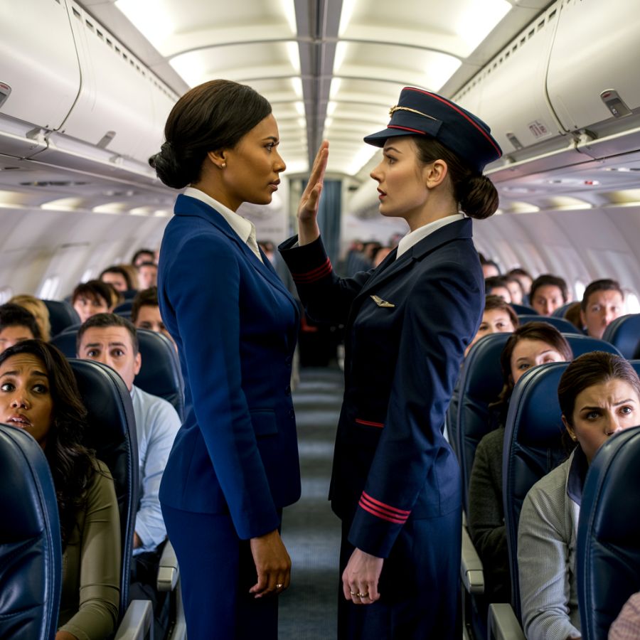 A Amara le ardían las mejillas, pero mantuvo la compostura. El asistente susurró que iría a buscar al capitán, pero la humillación ya se extendía por la cabina. Algunos pasajeros la miraban fijamente. Otros fingían no hacerlo. Amara se quedó allí, dolorosamente expuesta, deseando que la tierra se la tragara.