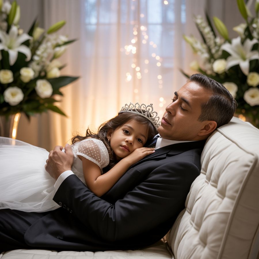 El silencio se apoderó de la habitación, un silencio mucho más pesado y denso que el que había antes. Ya no había susurros, ni llantos, ni el ruido de los niños. Todos los ojos estaban fijos en el ataúd, en la niña dormida y el padre que, de alguna forma, la estaba consolando. El aire se sentía espeso, cargado de una energía que nadie podía comprender. La abuela, la única que parecía mantener la calma, se arrodilló junto al ataúd y acarició suavemente el cabello de su nieta.