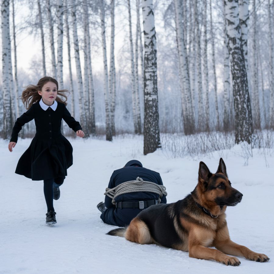 Años después, cuando la nieve volvía a cubrir el bosque, la cabaña seguía allí: cálida por dentro, blanca por fuera. En la pared del salón había una foto enmarcada: una niña de abrigo rosa, un pastor alemán con la cabeza en su regazo, y una policía sonriendo detrás, con una pulsera de hilos en la muñeca.