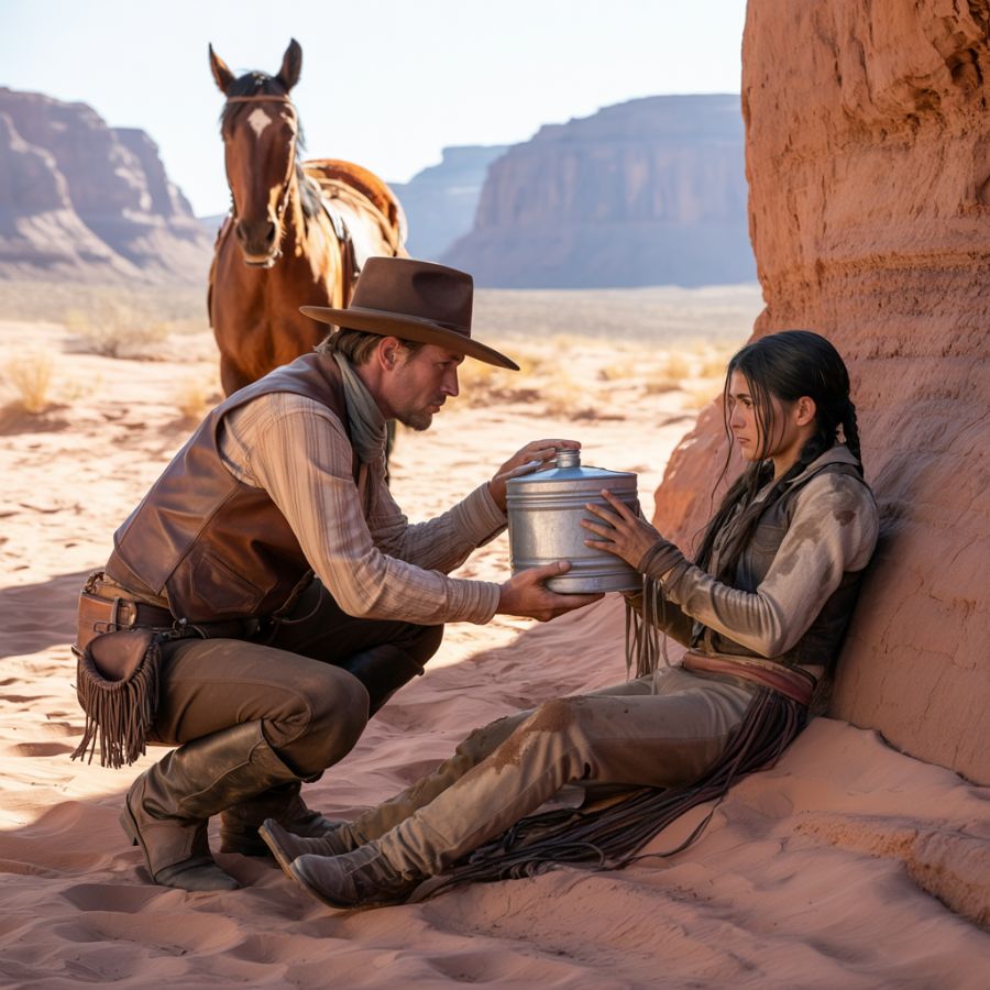 La ayudó porque no pudo hacer otra cosa. No pensó en recompensas ni en reconocimiento: solo vio a otro ser humano que podía morir si él miraba hacia otro lado. Le quitó la silla, la alimentó con trozos de su poco agua, y cuando vio que el animal no podría avanzar sin ayuda, tomó la decisión que lo definiría: desmontó, se quitó las polainas y ofreció su caballo, su único caballo, a la mujer que nació entre tierras que él no comprendía. Ella se llamaba Ayana. Entre jadeos y susurros, le explicó que su tribu vivía más allá del río de arena, y que si la devolvía allí, podrías encontrar alguien que curase su herida.
