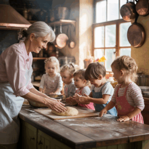 Rousy comenzó a repetir sus frases como si fueran reglas sagradas. Los codos fuera de la mesa. Nada de más mermelada, cariño. Y Beceni, la más dura, la más cerrada, ahora trenzaba el cabello de sus hermanas sin que nadie se lo pidiera. Una tarde, Clara estaba amasando pan, harina en la cara, las mangas arremangadas.