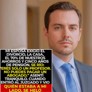 Selene me informó que ya había hablado con un abogado y que no había nada en qué trabajar. Sus demandas eran claras: quería el departamento, el 70% de nuestras ahorros y una pensión compensatoria durante cinco años. La frialdad de su tono y la despreocupación en su mirada me hicieron sentir impotente. “Solo eres un profesor, Adrián. No tienes dinero para un abogado de verdad”, me dijo con desprecio. En ese momento, comprendí que había subestimado su ambición y su disposición a hacer lo que fuera necesario para salir adelante.