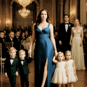 De ella descendió Olivia, vestida con un elegante traje azul zafiro que capturaba la luz en cada paso. Sin embargo, no estaba sola: la acompañaban cuatro pequeños, vestidos a juego, tomados de su mano y observando todo con curiosidad.
